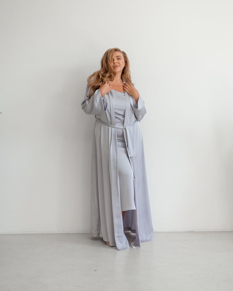 Жіночий Халат з тканини шовк Армані "Anetta", Довжина максі, Сірий