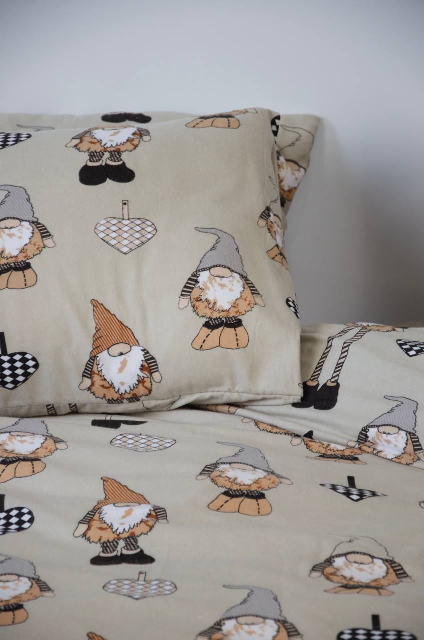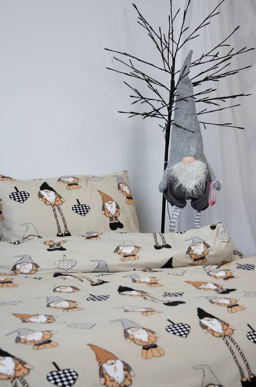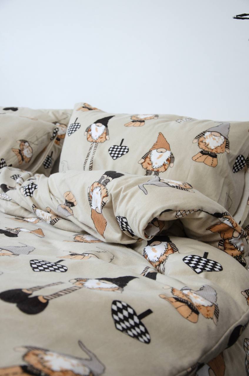 Набір постільної білизни БАЙКА ФЛАНЕЛЬ з візерунком гноми, різдвяна тепла постіль на зиму 100% бавовна (щільність 170 г)