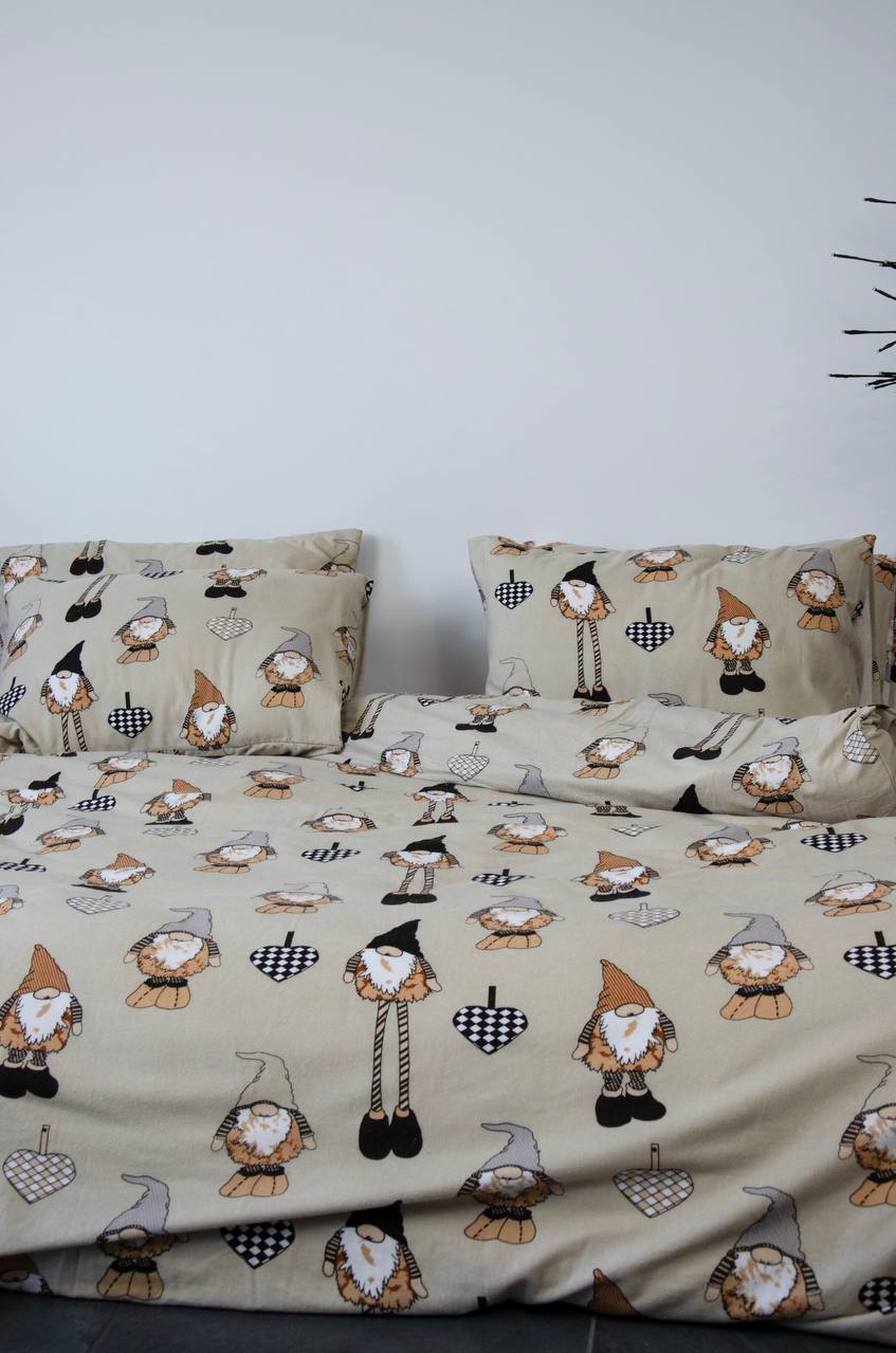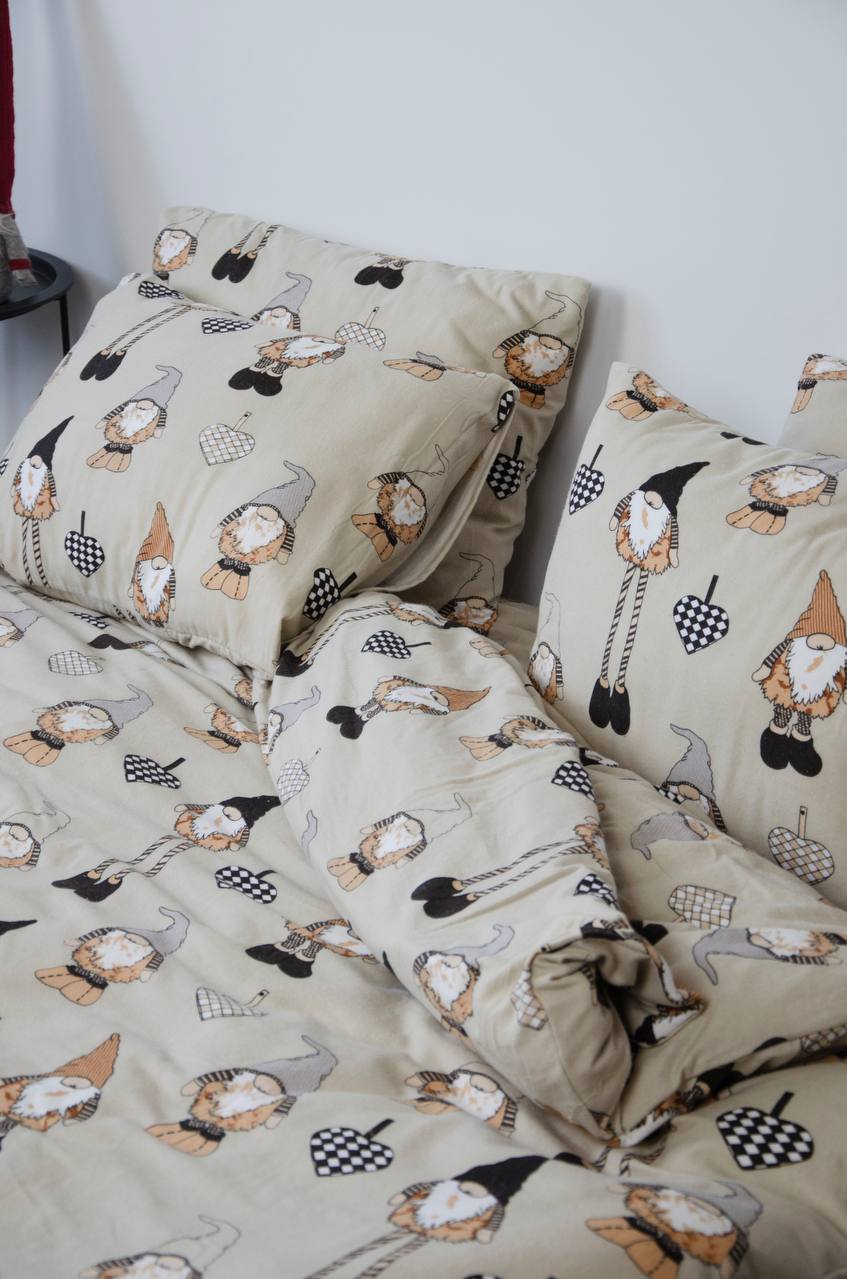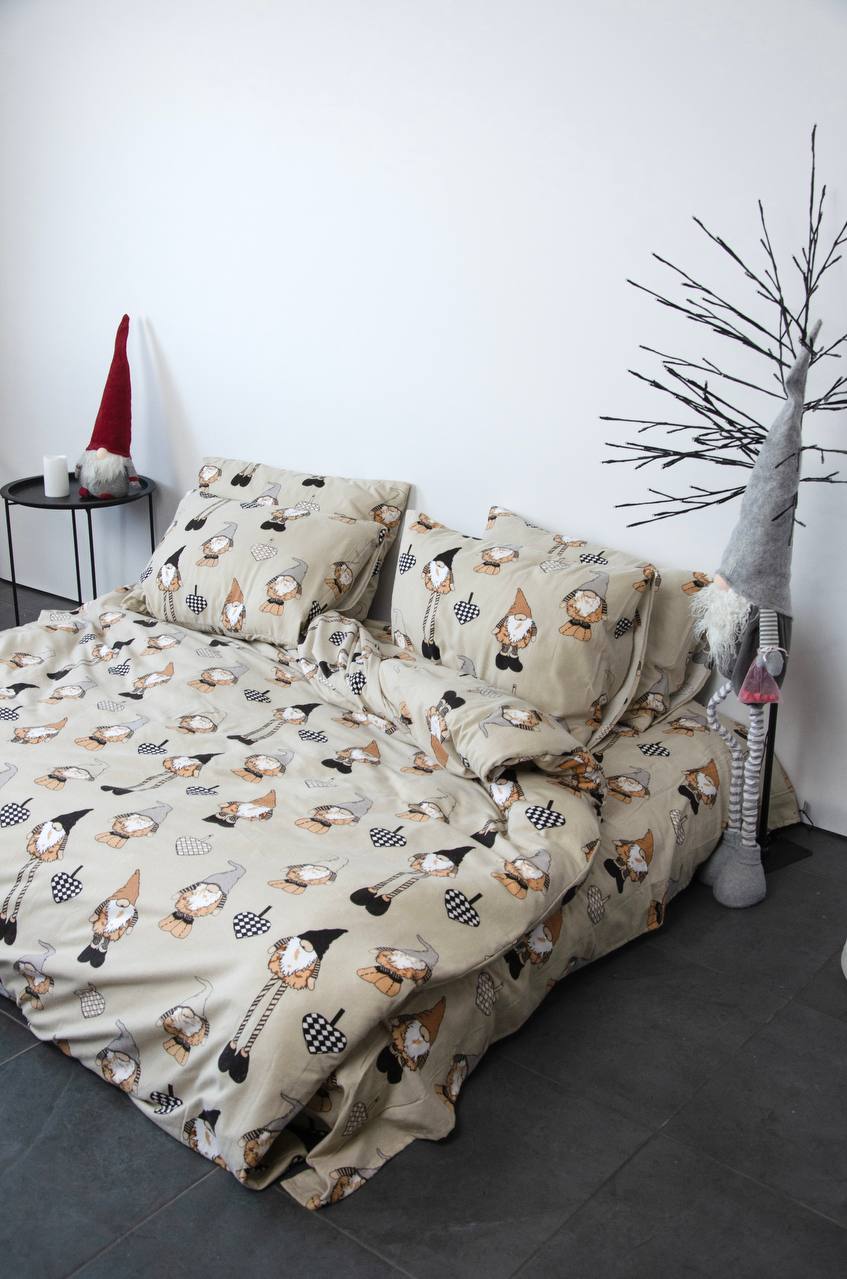 Набір постільної білизни БАЙКА ФЛАНЕЛЬ з візерунком гноми, різдвяна тепла постіль на зиму 100% бавовна (щільність 170 г)