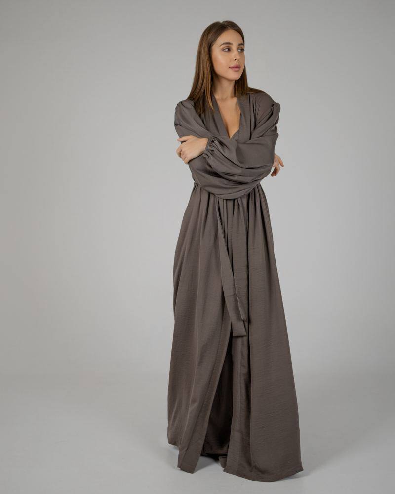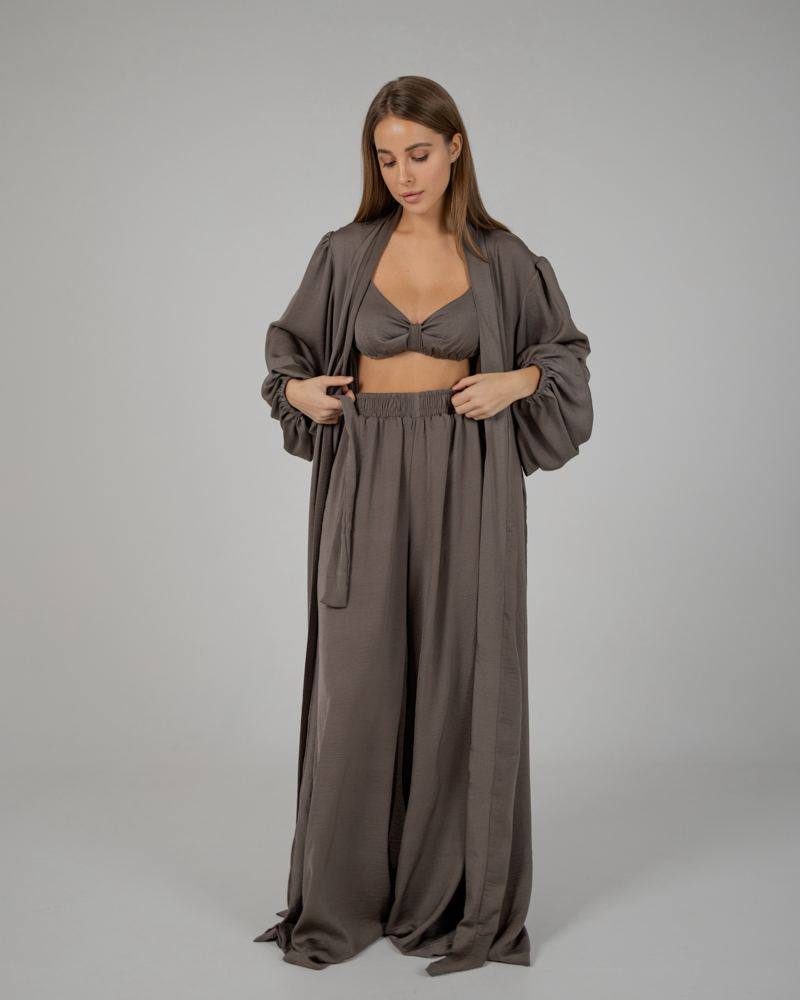 Піжама жіноча 3 в 1 з Бра, Халат, Штани шовк-віскоза у стилі Вікторія Сікрет. Колір Хакі. QC