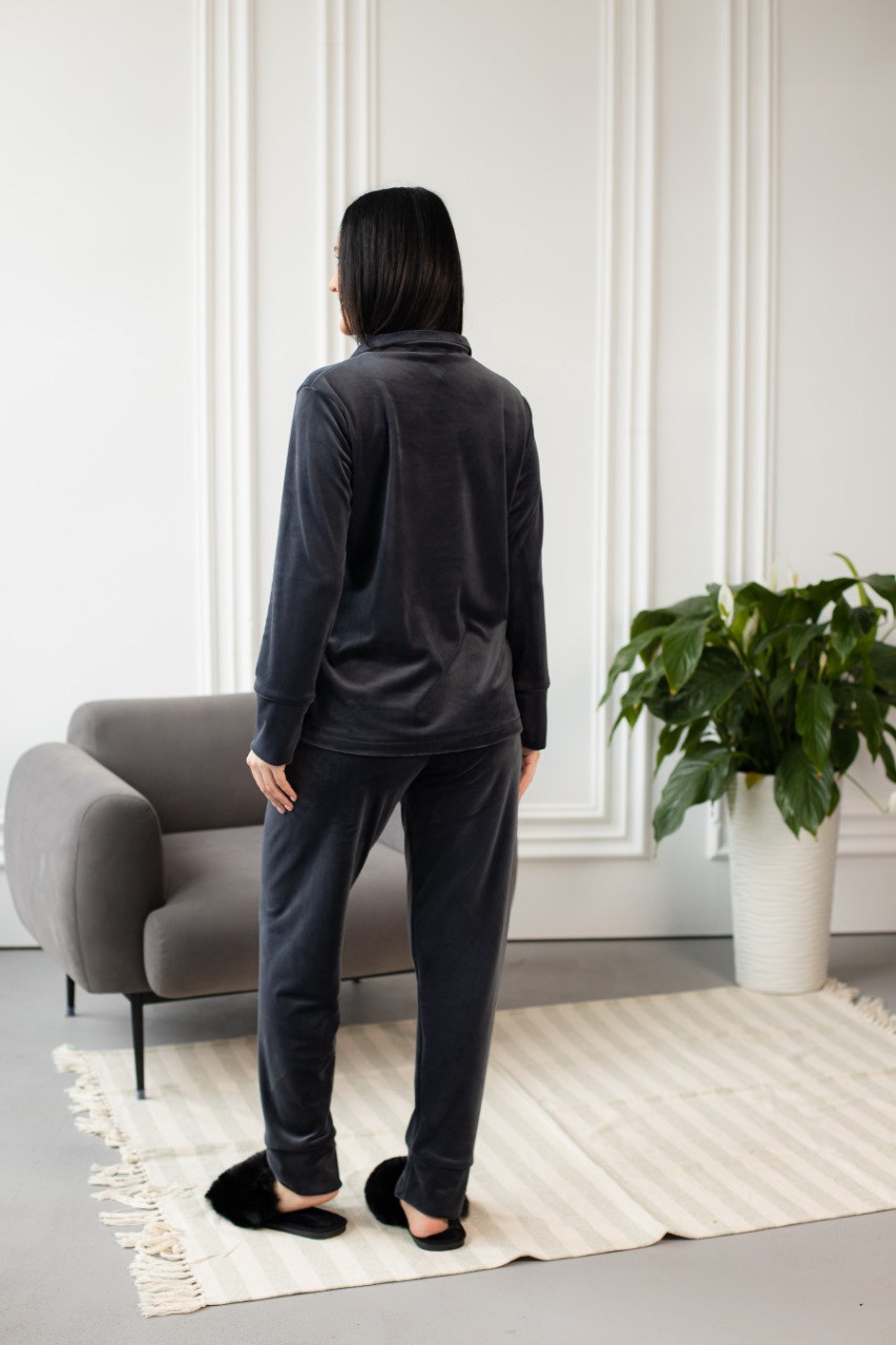 Тепла жіноча піжама, велюр плюш. Домашній костюм. Колір графіт
