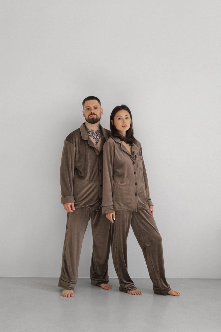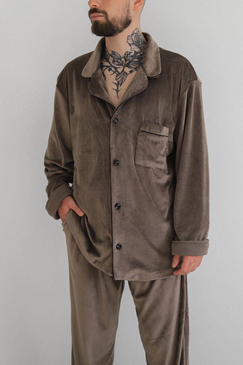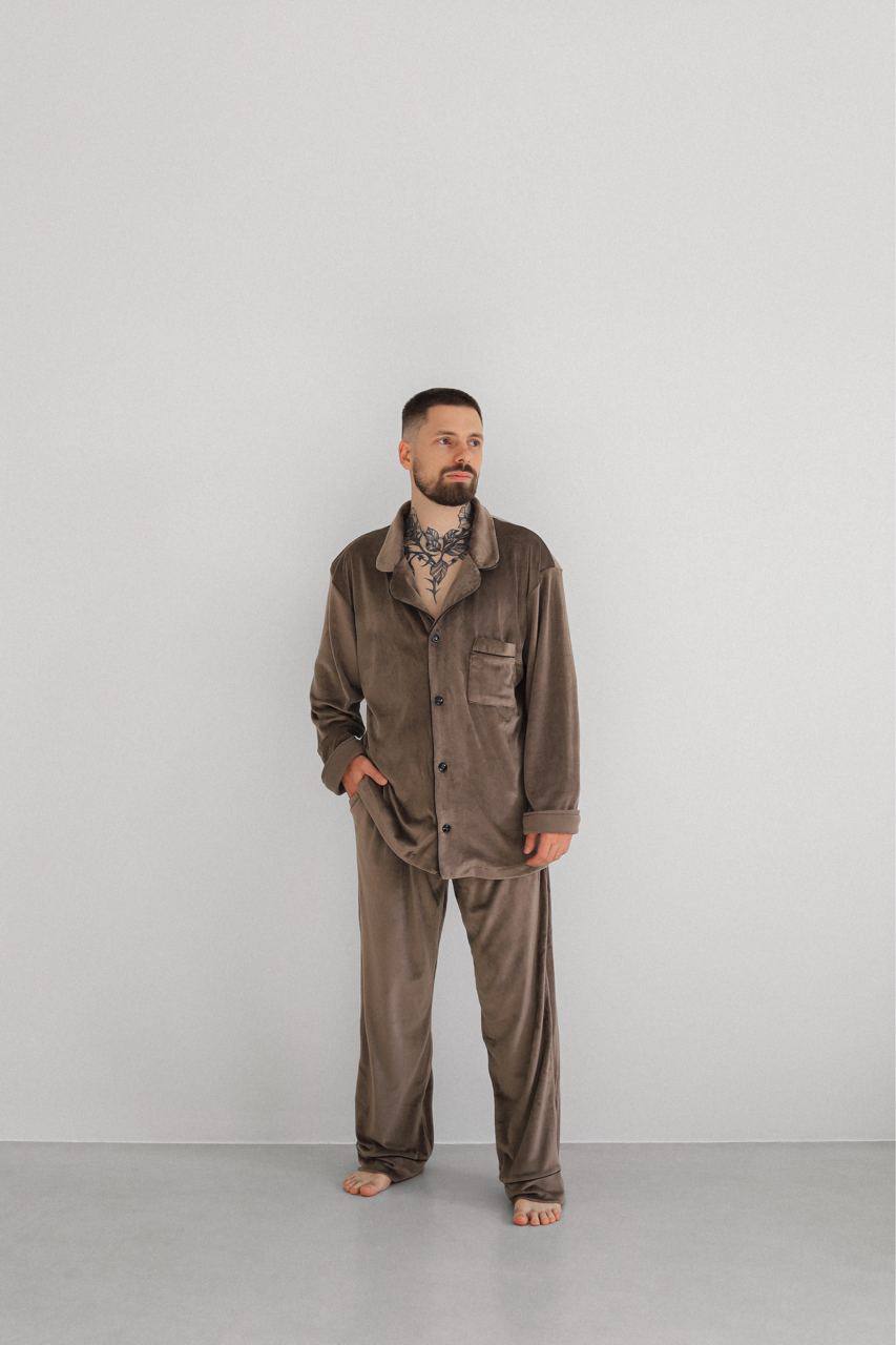 Тепла Чоловіча піжама, велюр плюш. Домашній костюм. Колір Коричневий