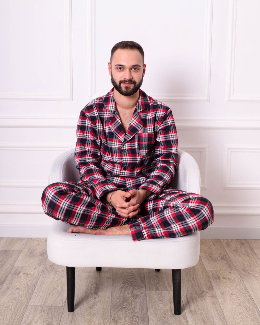 Чоловіча піжама в клітинку, Сорочка та Штани. Тканина байка, колір синьо-червона клітинка