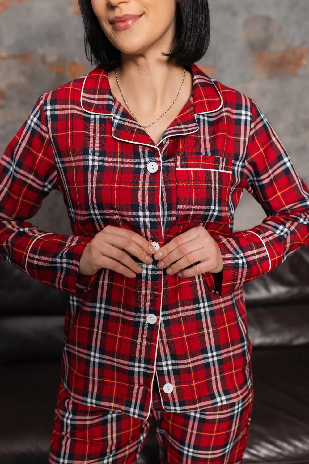 Відчуйте комфорт і стиль у кожну ніч з нашою елегантною піжамою, виготовленою з котону люкс найвищої якості. Класичний клітинковий принт у яскравому червоному кольорі підкреслить вашу індивідуальність, а продуманий крій забезпечить ідеальну посадку.